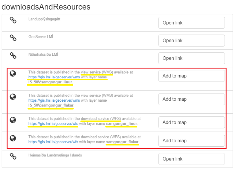 Skemmtilegra er að skoða gögnin í nýrri Landupplýsingagátt jafnvel ásamt öðrum gögnum sem eru þar til skoðunar. Það þarf að láta Landmælingar Íslands vita ef wms/wfs þjónustur eru fyrir hendi hjá viðkomandi stofnun þannig að hægt sé að tengja gögnin við Landupplýsingagátt.