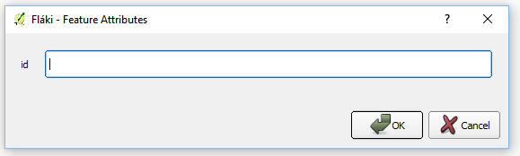 Þegar búið er að teikna upp fyrirbæri þarf að hægrismella og við það sprettur upp Feature Attribute valmynd þar sem hægt er að fylla út í þeir eigindir sem skilgreindar voru þegar skráin var búin til. Þegar búið er að fylla út í þær eigindir sem notandinn vill er Ok valið og við það verður nýja fyrirbærið til.